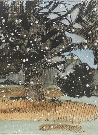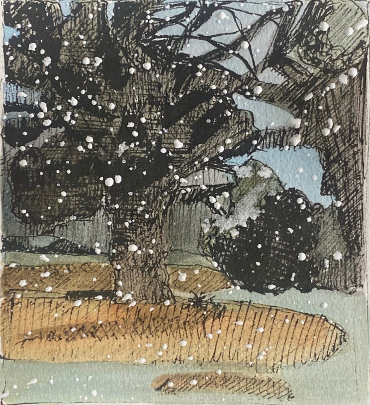 I post my artwork on Instagram every day. The icon will take you to my account.